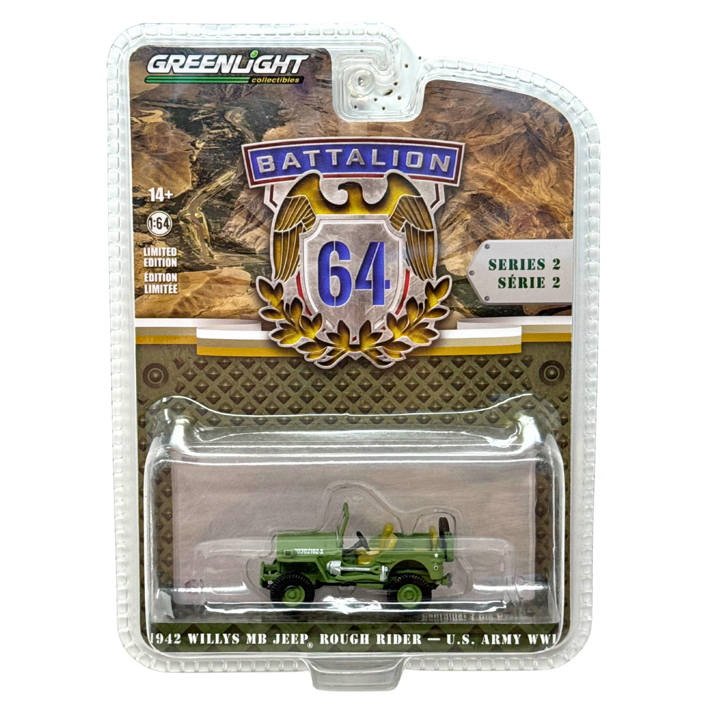 Greenlight Battalion 64 1942 Willys MB Jeep Rough Rider - U.S. Army 1:64 Diecast