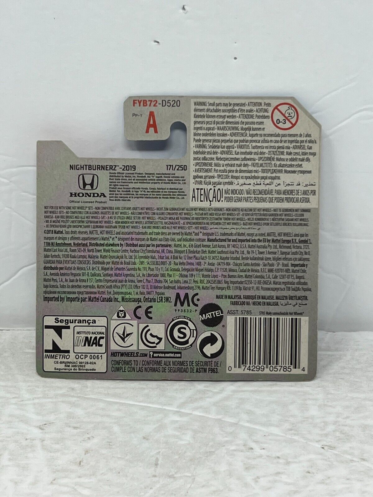 Hot Wheels Nightburnerz 2018 Honda Civic Type R JDM 1:64 Diecast Short Card