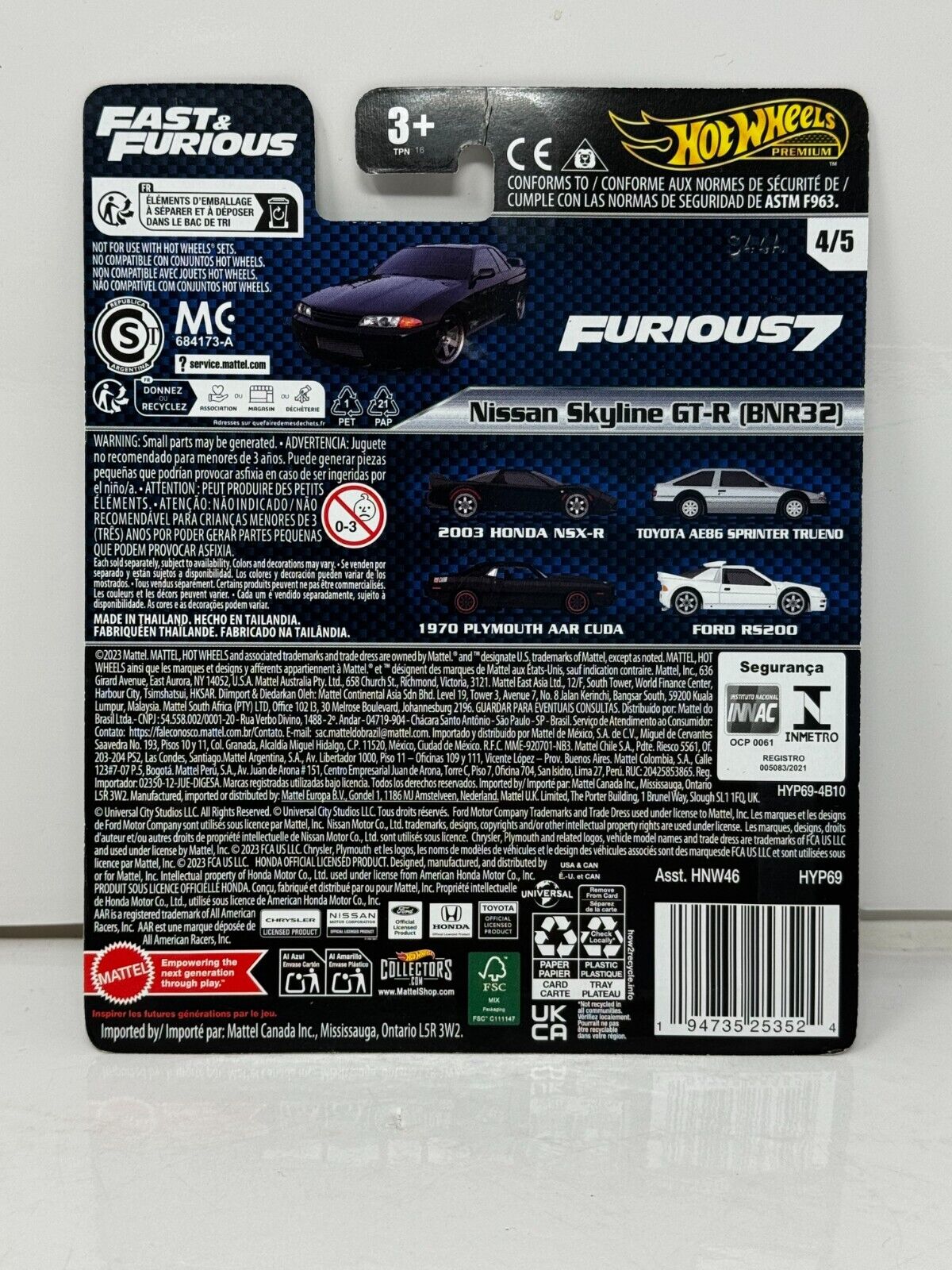 Hot Wheels Premium Fast & Furious Nissan Skyline GT-R (BNR32) 1:64 Diecast